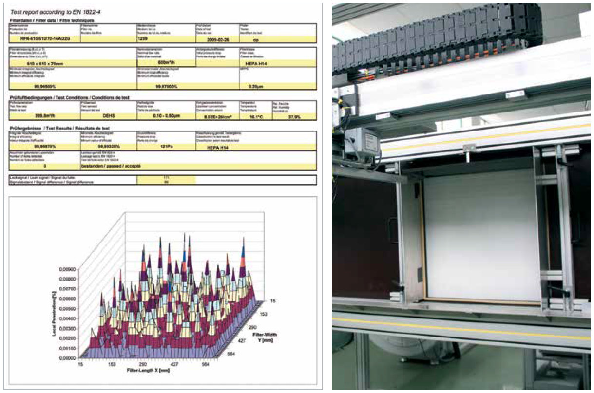 EN1822 reports must show average and local efficiency at the stated flow rate, initial pressure drop and class of the filter.