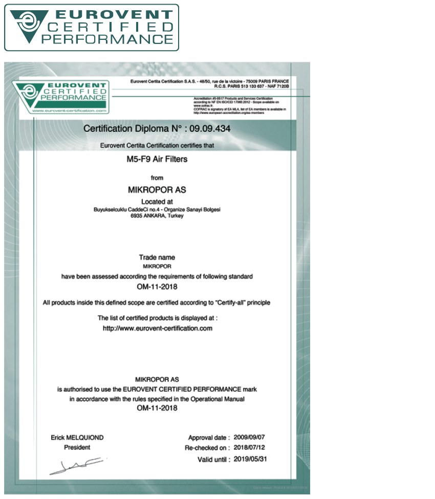 products and thus, the performances of the filters are guaranteed. By dint of detailed identification of certified products,