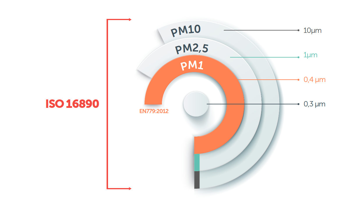 For instance, if a filter can capture more than 50% of PM1* particles, it is classified as a ISO ePM1 filter.