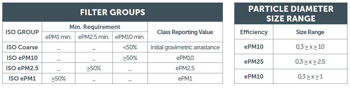 The ISO 16890 Standard divides air filters into four groups. The prerequisite for each group is for the filter to capture at least